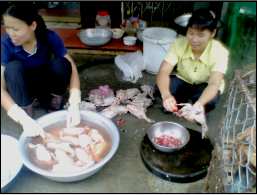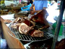 | これが強烈な犬肉売り場。ちょうどさくら位の大きさであろうか?オバサンは正に頭をかち割っていた(>_<) |
