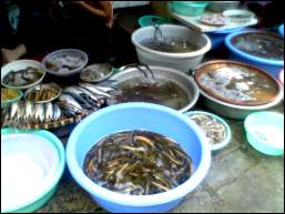 | 市場の中にはいくつもの生き物売り場があり、私はこの近くまで行くのは恐かった |