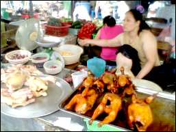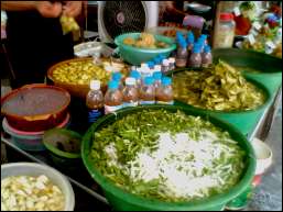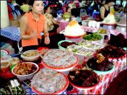 | 見た目凄く美味しそうだ。餃子のような物も。でも恐くて市場の惣菜系には手は出せません。 |