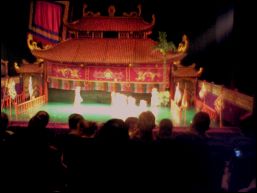 | この日は市場での買い物、オイルマッサージを受けた後、市内の観光名所「水上人形劇」を見に行きました。エアコンが殆どないこの国でここはエアコンもあって快適に観劇を見る事が出来ました。 |