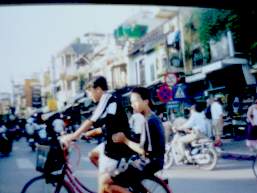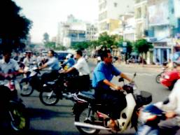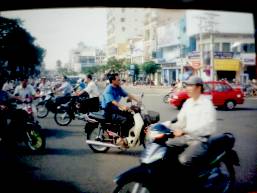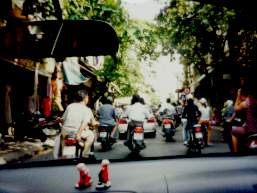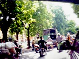 | 車の前には何時もバイクと自転車が走っていてクラクションを鳴らしてどかせて抜く |
