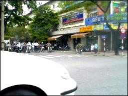 ホーチミン市内はハノイとは違い近代的な感じでさすがベトナム一番の観光地だなぁという感じ。道路の幅も広く整備されていて都会的な感じがする。 |