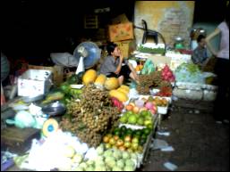 | ここも市内の大きな市場。床にはゴミがたくさん。フルーツの皮も床にポイ! |