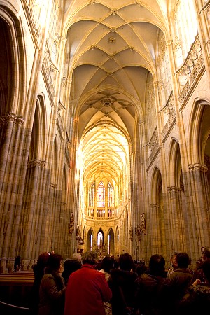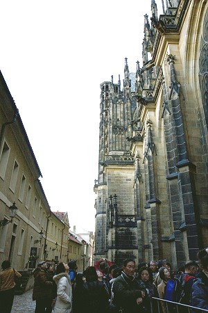 | プラハ城の中にある聖ヴュート教会に入るのに早朝から既に観光客で並んでいます。 |