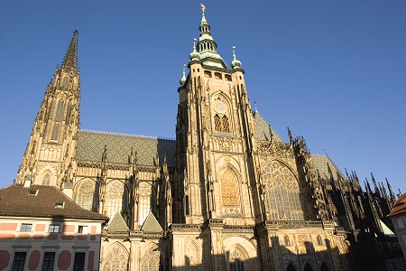 | きっと日頃の行いがいいんだなぁ〜 雨上がりの澄みきった空に見えてきたのはプラハ城 |