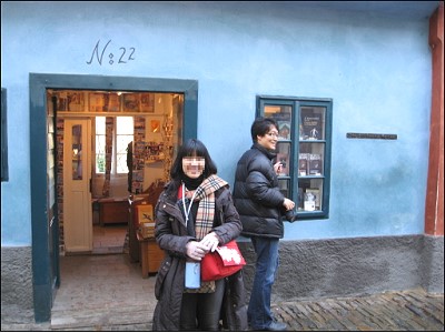 | 黄金の小路と呼ばれる路地のカフカの家。でも集合時間まで時間が余りなくてゆっくり見れませんでした。こんな観光地なのにトイレが本当に少なくて、トイレに並んでいる時間の方が長かったわ |