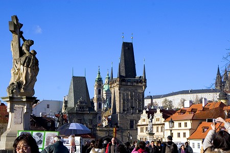 有名なカレル橋の上。観光客でごった返してます。橋の上には聖人の像がずらっと並んでいるのですが、日本人が一番馴染みの深いフランシスコザビエル君は修復中(洗浄)であいにくなお姿でした