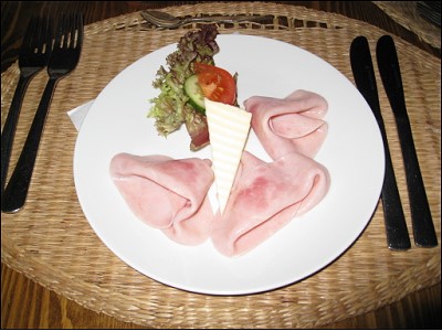 | 昼食タイ〜ム。本日のメニューは前菜がプラハハム。チェコビール (45コルナ)と共に頂きました |