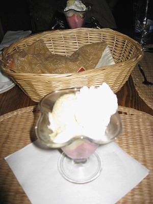 | 上のお料理でお腹が一杯になってしまい、デザート のアイスクリームは殆ど食べられなかったよ |