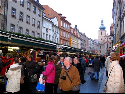 | 昼食の後、一旦解散 旧市街を3時間ほど、自由行動です。この市場は旧市街広場から10分程の所にある、市場。クリスマス以外の商品も色々あったし、途中寒くなってグリューワインを飲みながらぶ〜らぶら |