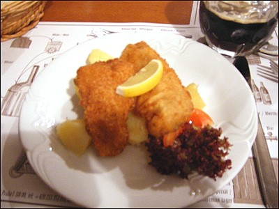 | 魚のフライ。多分鱈かなぁ。レモンを搾って美味しく頂きました |