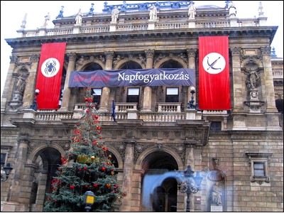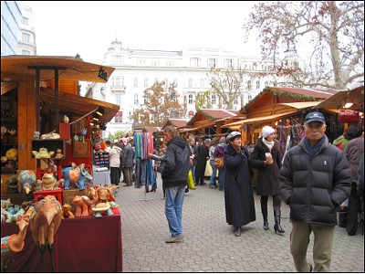 | ブタペスト市街の観光を終えて、クリスマスシーズンのみ開かれている今回のツアーのお楽しみヴェレシュマルティ広場前のクリスマス市へ行きま〜す。さぁ見るぞ見るぞぉ〜 |