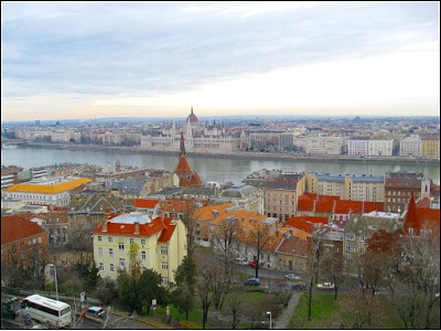 | ブタペストの市内を一望できる。昨夜のドナウ川です 西岸の街がブダ地区、東岸がペスト地区。あわせてブタペスト。だったんですねぇ |