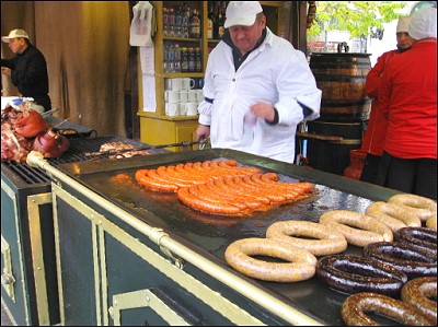 | こちらはでっかいウィンナーを焼いています。いいニオイだ〜 じゅる、、、 |