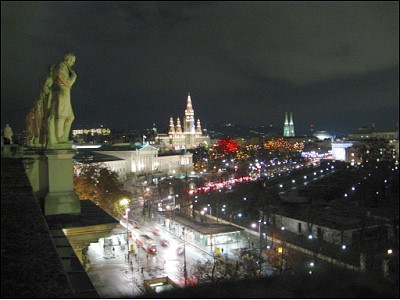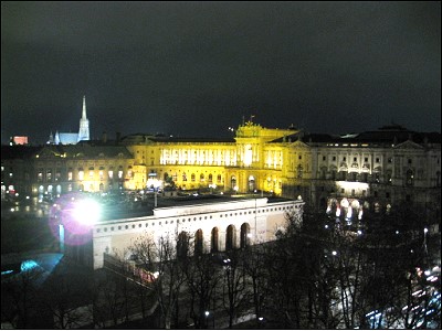 | ホテルの目の前はウィーンメッセで、円形のオフィスのネオンが煌々とと付いてました |