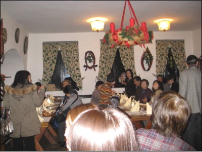 | 皆さん飲む飲む。ちなみにこのお店は日本の団体客ばかり入っていましたがお代わり してたのはうちらのグループだけだったようです。飲兵衛が揃ってましたね |