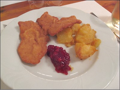 | メインはウィーン風カツレツのウィンナー・シュニッツェル、、、の筈でしたが出てきたのはお魚のフライでした 普通に美味しかったからいいかぁ |